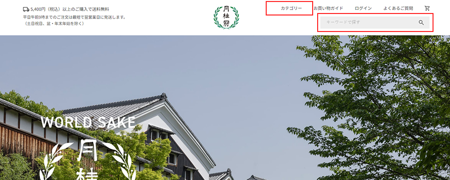 「キーワード(検索窓)」・「カテゴリー」の箇所を確認する