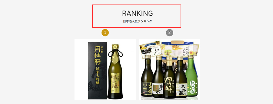 「日本酒ラインナップ」・「日本酒人気ランキング」の箇所を確認する