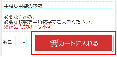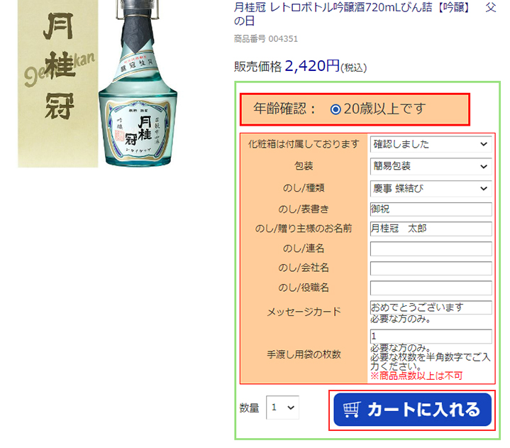 ご希望の商品が見つかったら「年齢確認」にチェックを入れ「カートに入れる」ボタンを押してください。