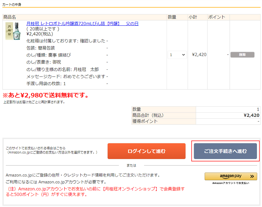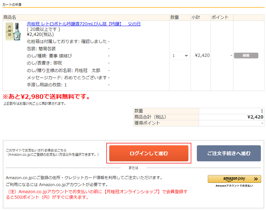 非会員のお客様でamazon pay決済の場合