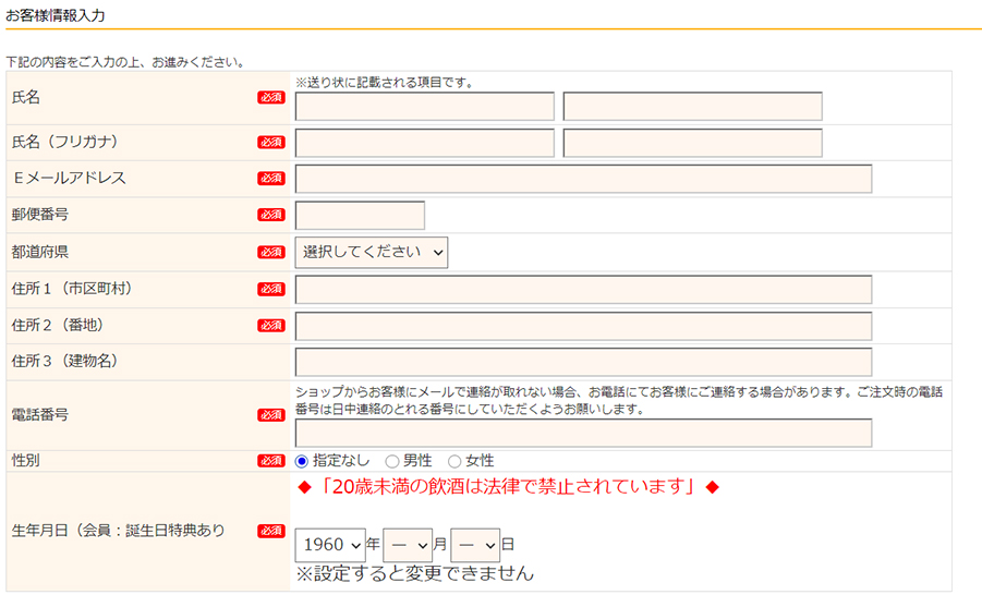 お客様情報のご入力