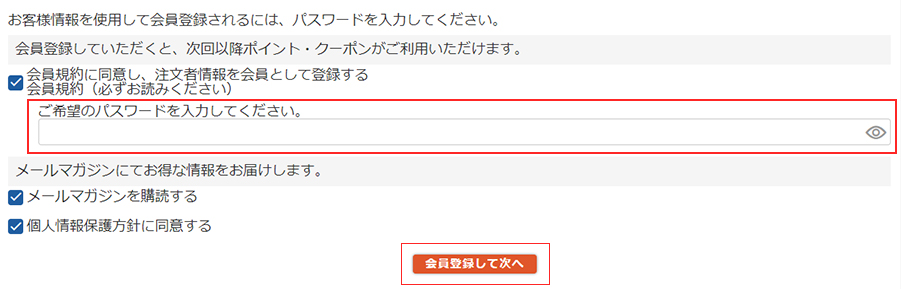 (ご注文と同時に会員登録をされた場合は、次回以降のご注文でポイントがお使いいただけます。)