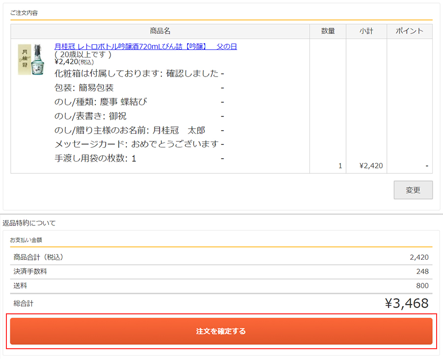 ご注文の確定