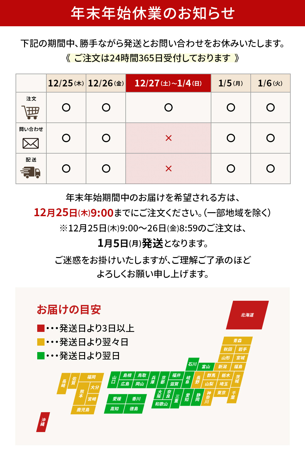 平日午前9時までのご注文は最短で翌営業日に発送します。